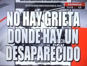 Un pequeño sector de la sociedad cuestiona a los gremios por impulsar actividades sobre la desaparición de Santiago Maldonado en los colegios. Para algunos funcionarios, los docentes «utilizan» la desaparición con fines políticos ¿Cuáles serían los fines políticos? Acá no hay grieta. Todos vamos a reclamar y a seguir reclamando hasta saber qué es lo que pasó con Santiago. Porque Santiago no aparece, y es «curioso» que al gobierno le irrite tanto hablar el tema.