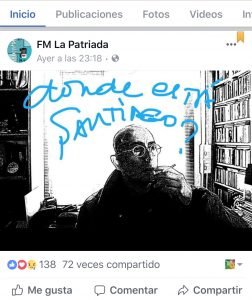 Desde FM La Patriada, la emisora donde trabaja Marcelo Figueras, periodista y biógrafo personal de Solari compartieron un mensaje de reclamo por Santiago Maldonado, visto por última vez el 1 de agosto, después de la brutal represión de Gendarmería durante una propuesta mapuche.
