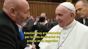 Santiago Cuneo estuvo frente al Papa Francisco y cuando le dio la mano aprovechó para expresarle su preocupación por la falta de libertad de expresión en nuestro país. Desde su cuenta de Twitter el periodista de Crónica TV publicó el momento del encuentro y las palabras de Francisco.