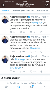Qué Feinmann y Manguel se llevan mal ya lo sabemos. Pero Edu se zafó: «Shhhhh… Silencio, no me interrumpas». Le gritó. Fantino no pudo calmar las cosas y se pudrió todo. Jorge Rial anunció en su cuenta de Twitter la renuncia de Feinmann.